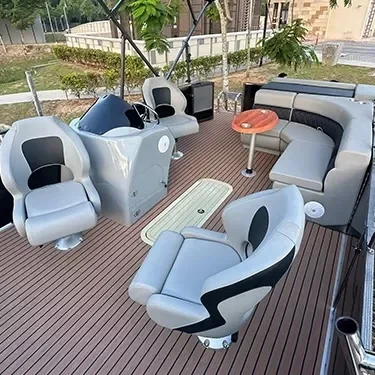 This pontoon boat is the right option for recreation and party for your family. It can run with a smaller motor making it more economical in operation. Cruising with your 17ft pontoon boat around lakes, canals or waterways you can enjoy the sunshine with your family, kids and even some friends.;